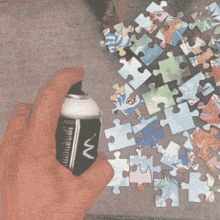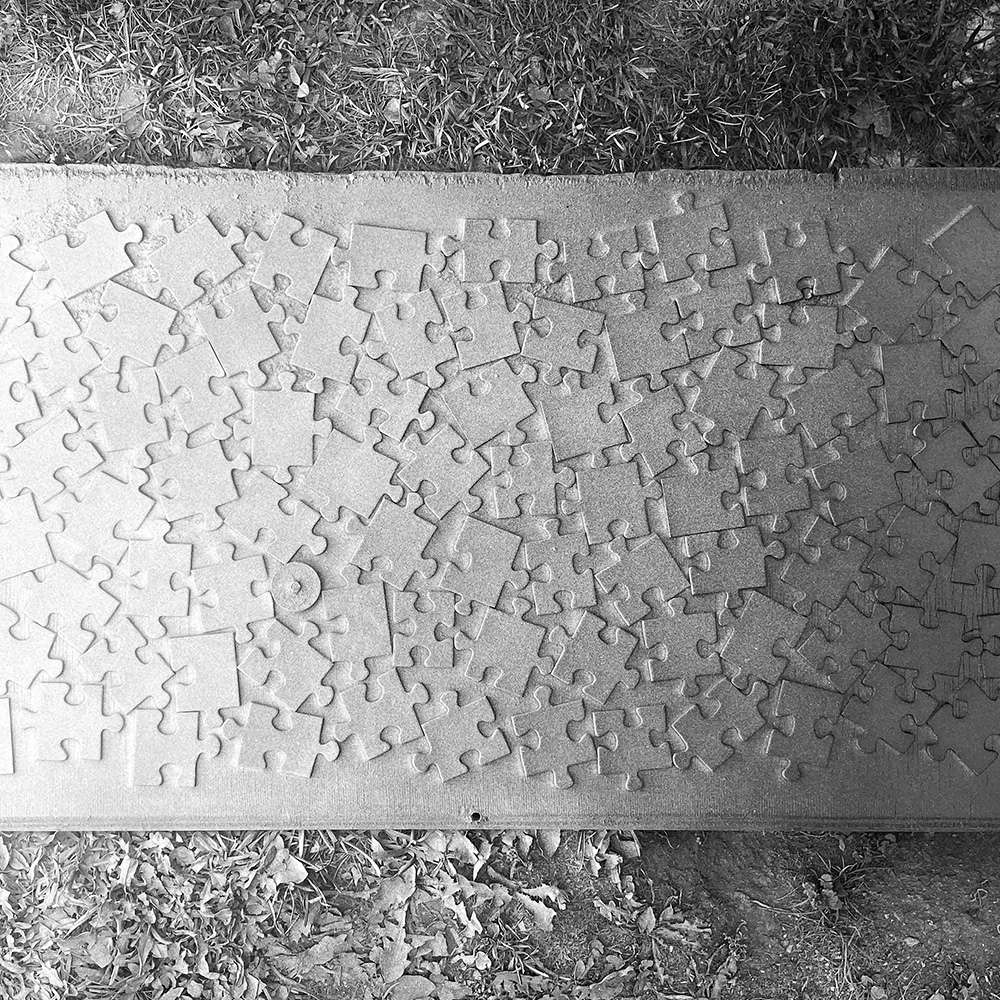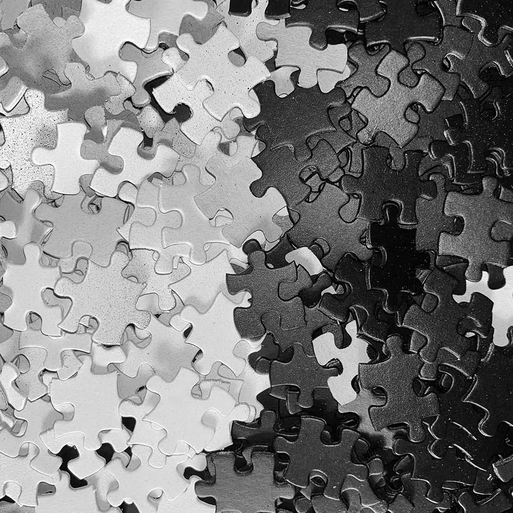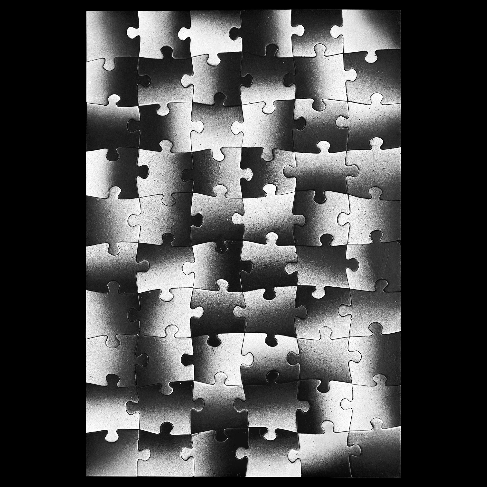 I decided to take an old 500 pieces puzzle and spray one half black and the other white. For the second painting I generated random shades of grey through a spraypainted gradient and the third one randomises gradient orientations.