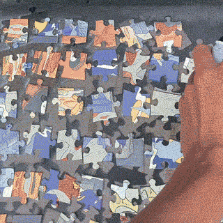 The first painting turned out to be quite torturous to solve. I ended up doing it upside down in order to see the cut edges correctly and not be distracted by the black and white pieces.